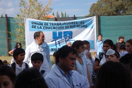 Miembros de la conducción de Unter participaron del acto efectuado con motivo del inicio del ciclo lectivo en la Escuela Primaria Nº 66 de J. J. Gómez, el cual se llevó a cabo frente a la yesera instalada en proximidades del establecimiento, en reclamo por las innumerables problemáticas que se originaron por la instalación de la misma en el sector.