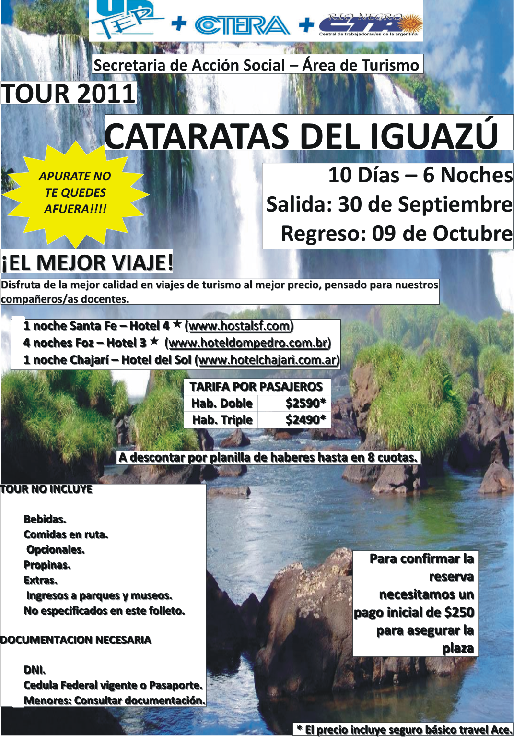 Cataratas del Iguazú 30/09/2011 09/10/2011 $ 2590 (Habitación Doble)