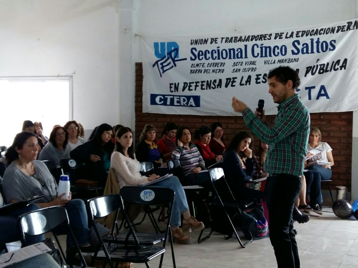 100 compañeras y compañeros participan en la seccional UnTER Cinco Saltos, del curso Responsabilidad civil del/a docente con la sanción del nuevo Código Civil. A cargo de Matías Lafuente, abogado, asesor legal del sindicato y organizado por la Escuela de Formación político sindical “Rodolfo Walsh”.