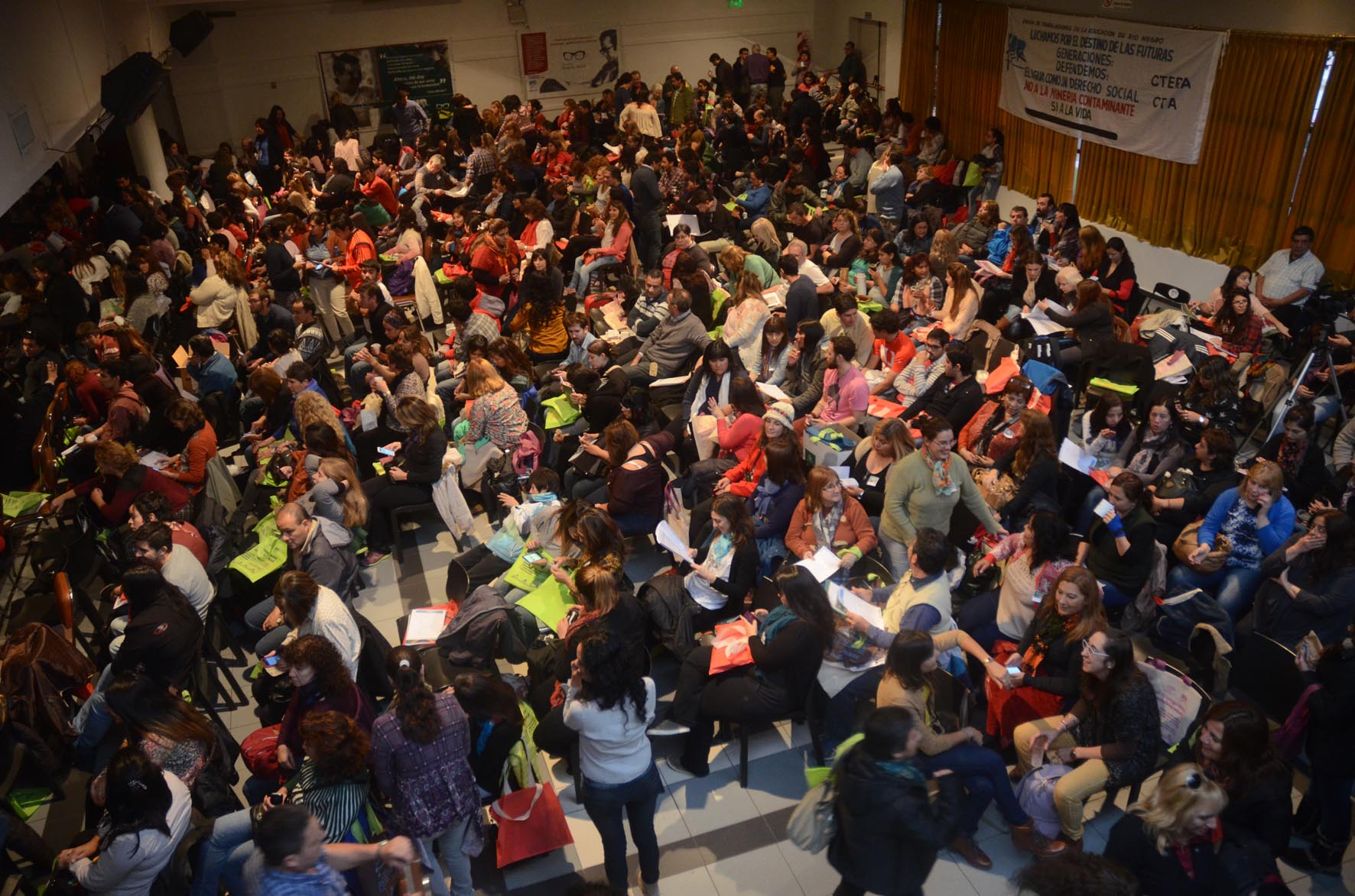 Ochocientas personas se acreditaron para participar del Congreso, además de docentes, se han convocado militantes sociales y amientales, equipo de investigación de la UNCo. Todos con saberes y experiencias para compartir y vincular. La bienvenida se dio en la mesa de apertura a cargo de Mario Floriani, Secretario General, José Luis Burgos, Secretario de Educación, Claudia Vecchiarto de la Escuela Rodolfo Walsh y Laura Maffei de la coordianación del Departamento Socioambiental Chico Mendes.