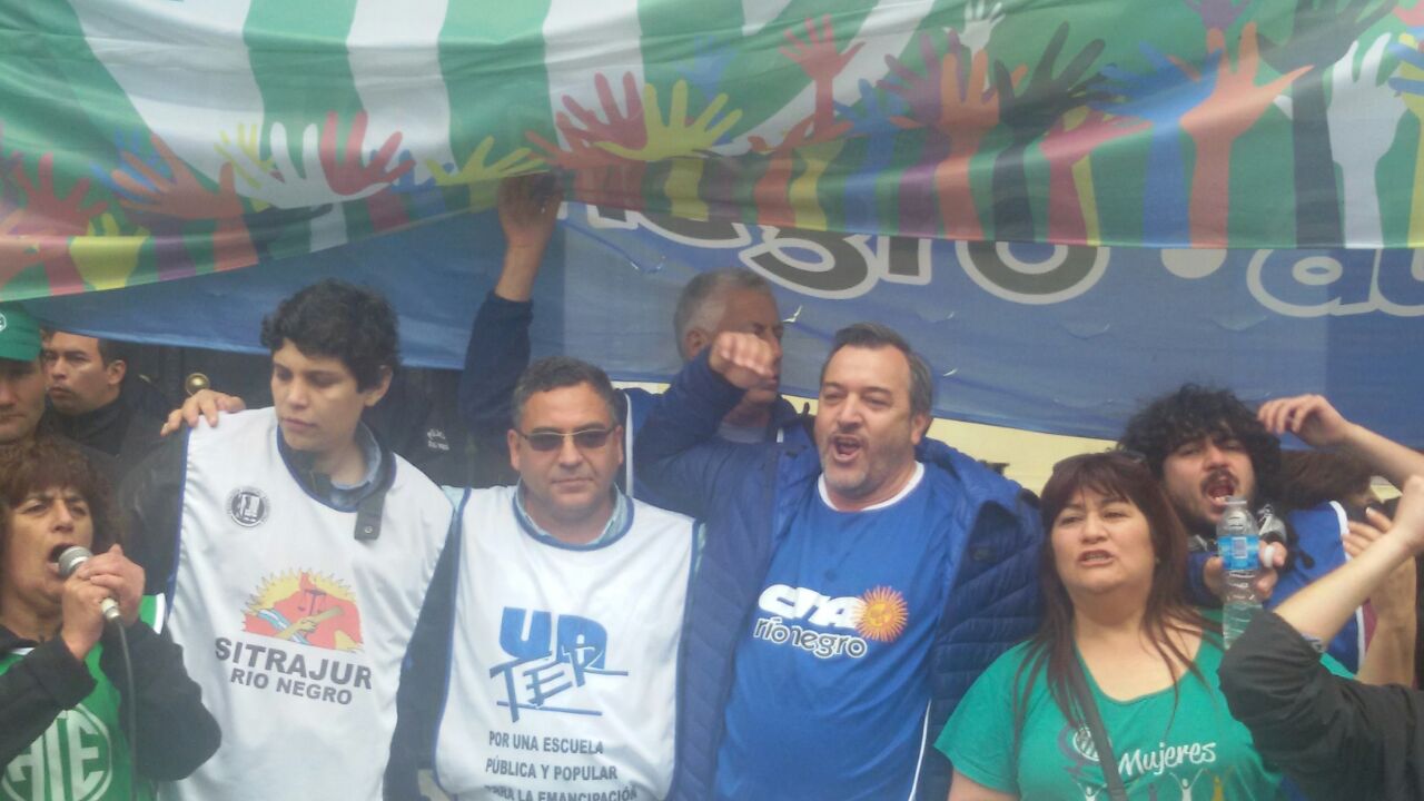 En el mismo acto Rodolfo Aguiar, Secretario General de ATE y de la CTA Autónoma de Río Negro, preguntó “¿En qué provincia vivimos?, donde las comisarías están llenas de móviles 0 km y los hospitales llenos de trabajadores haciendo cola a las 4 de la mañana para conseguir turno, porque tampoco funciona el IPROSS”.
