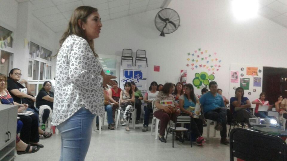 El viernes 9 de septiembre se desarrolló en el SUM del Jardín 111 de Fernández Oro, la jornada de formación Seguridad y Riesgos en Establecimientos Educativos. La actividad estuvo a cargo de Claudia Asencio, Delegada del Departamento de Salud en la Escuela de UnTER Zona AVO y del jefe de bomberos de la localidad.