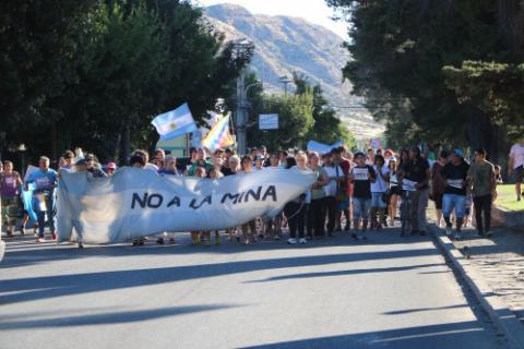 A lo largo de tres cuadras los vecinos avanzaron con cánticos y consignas en contra de la radicación de la minería a gran escala en la provincia. Con entusiasmo y fortaleza, padres con sus hijos y vecinos de todas las generaciones y condiciones sociales recorrieron las calles céntricas acompañados de batucadas, redoblantes y bombos.