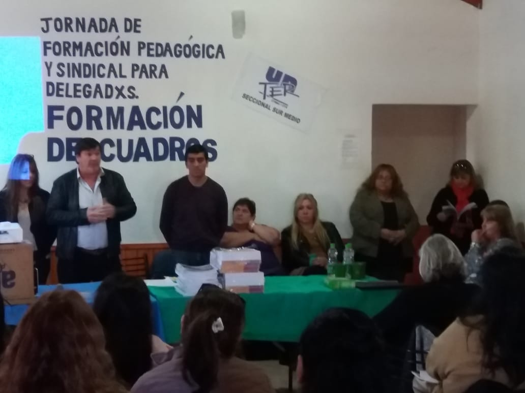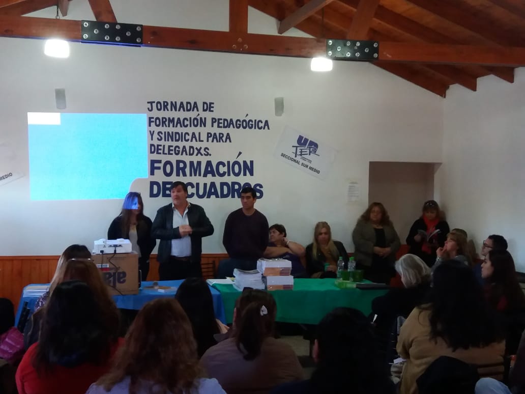 70 compañerxs de Seccional Sur Medio y Jacobacci, participan el 27 de abril de la Jornada "Formación de cuadros-Reflexiones sobre la militancia" organizada por la Escuela Rodolfo Walsh de UnTER y dictada por lxs representantes sindicales en Junta de Disciplina del CPE, Doris Lascano, Oscar Villaverde y Aurora Gustin, el asesor legal Matias Lafuente y Laura Maffei, coordinadora del Departamento provincial Socioambiental Chico Mendes.