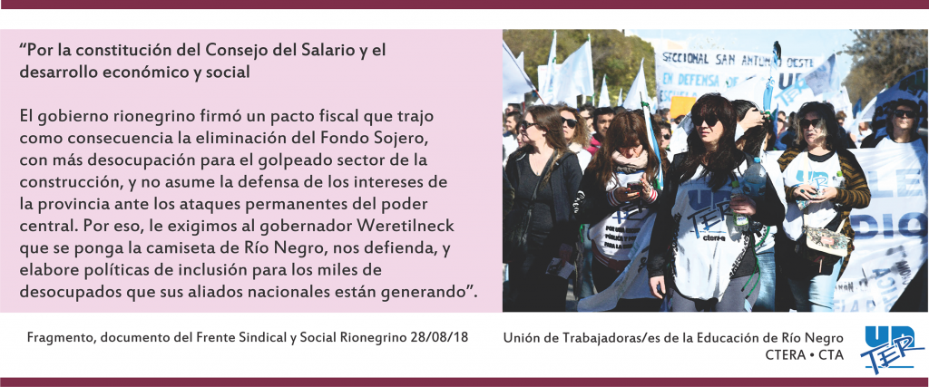 Documento del Frente Sindical y Social Rionegrino, 28/08/18.