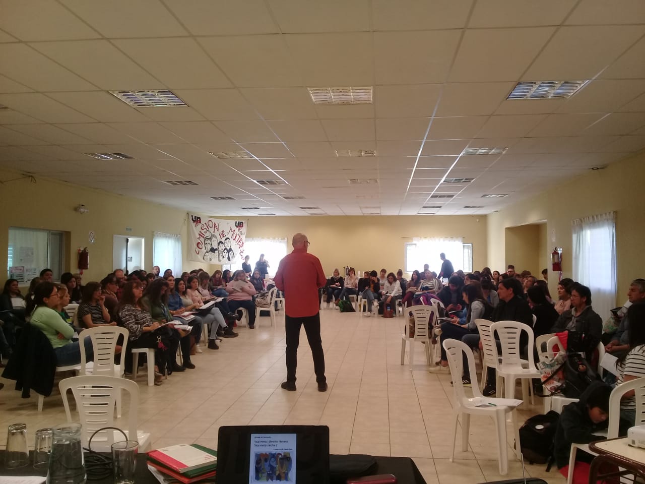 Ciento cuarenta compañerxs de Jacobacci, Comallo y Maquinchao participan de la Jornada pedagógica sindical "Salud Mental Colectiva II: La institución tormentosa" dictada por Daniel Sans y organizada por la Escuela de fomación "Rodolfo Walsh" de UnTER.