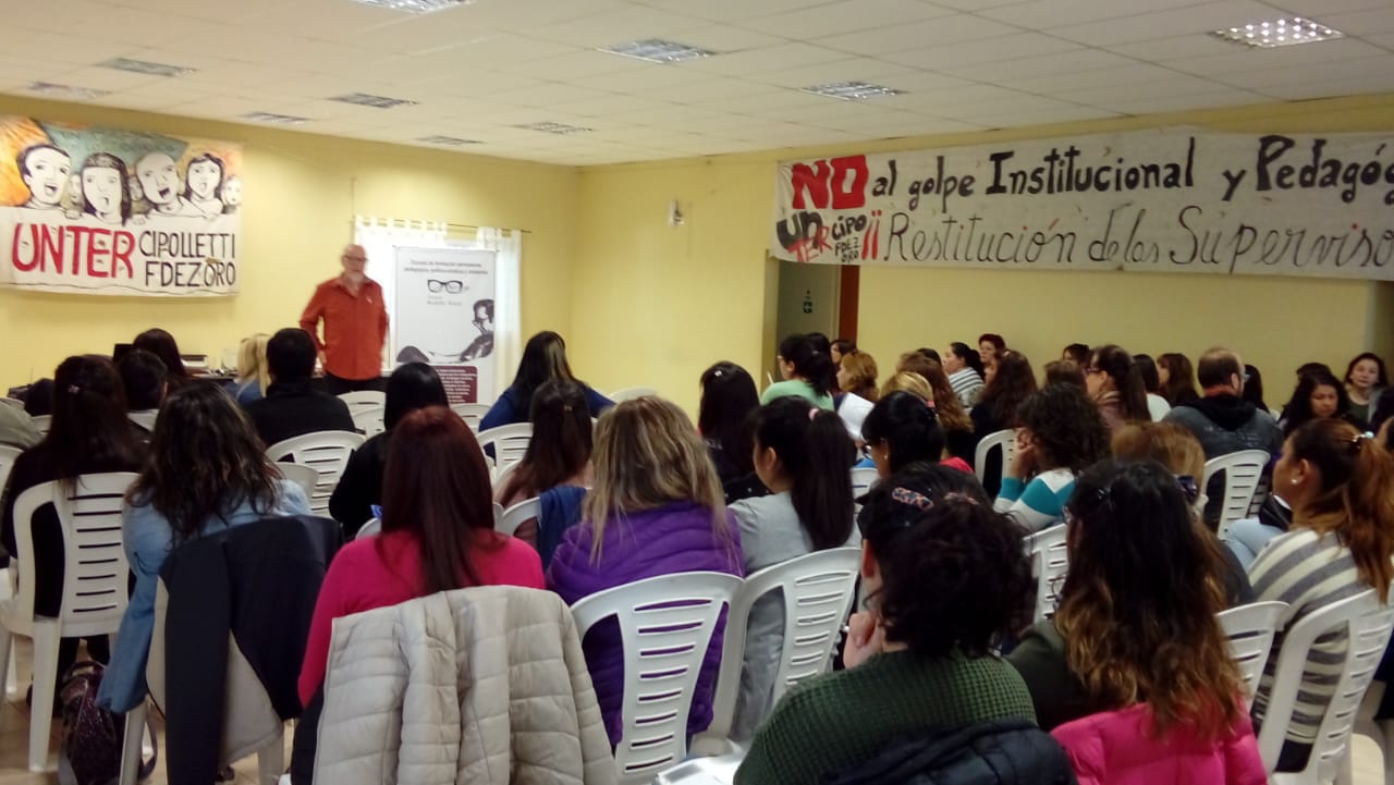 Setenta compañerxs participan el 6 de agosto, en Catriel, de la jornada de formación pedagógica “Salud Mental Colectiva II, La institución tormentosa”, dictada por el Lic. Daniel Sans, destinada a docentes de todos los niveles y modalidades y organizada por Escuela de Formación Permanente Pedagógica, Político – Sindical y Ambiental “Rodolfo Walsh” de UnTER.