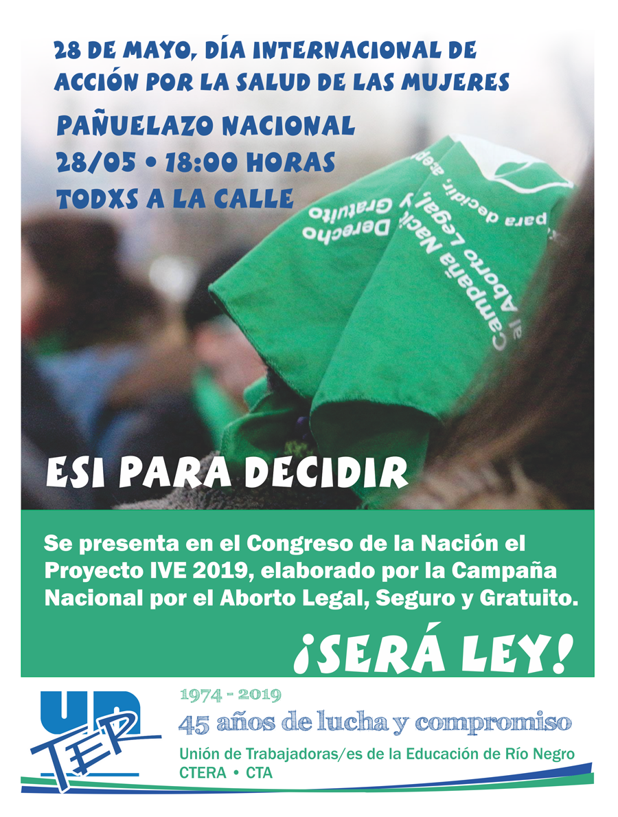 El 28 de mayo, Día Internacional de Acción por la Salud de la Mujeres, se presenta por octava vez en el Congreso de la Nación el Proyecto de Interrupción Voluntaria del Embarazo, IVE, elaborado por la Campaña Nacional por el Aborto Legal, Seguro y Gratuito