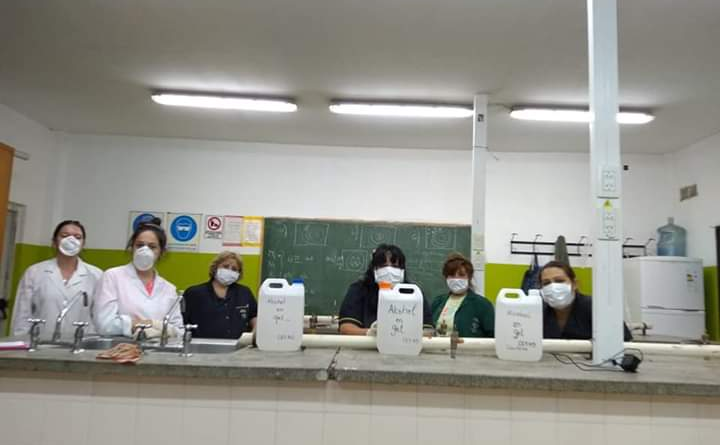 El 23 de marzo, desde el CET 5 de Cinco Saltos compañerxs docentes elaboraron 30 litros de alcohol en gel, y los donaron a hospitales y policías de la zona, mostrando una vez más solidaridad y compromiso con la comunidad.