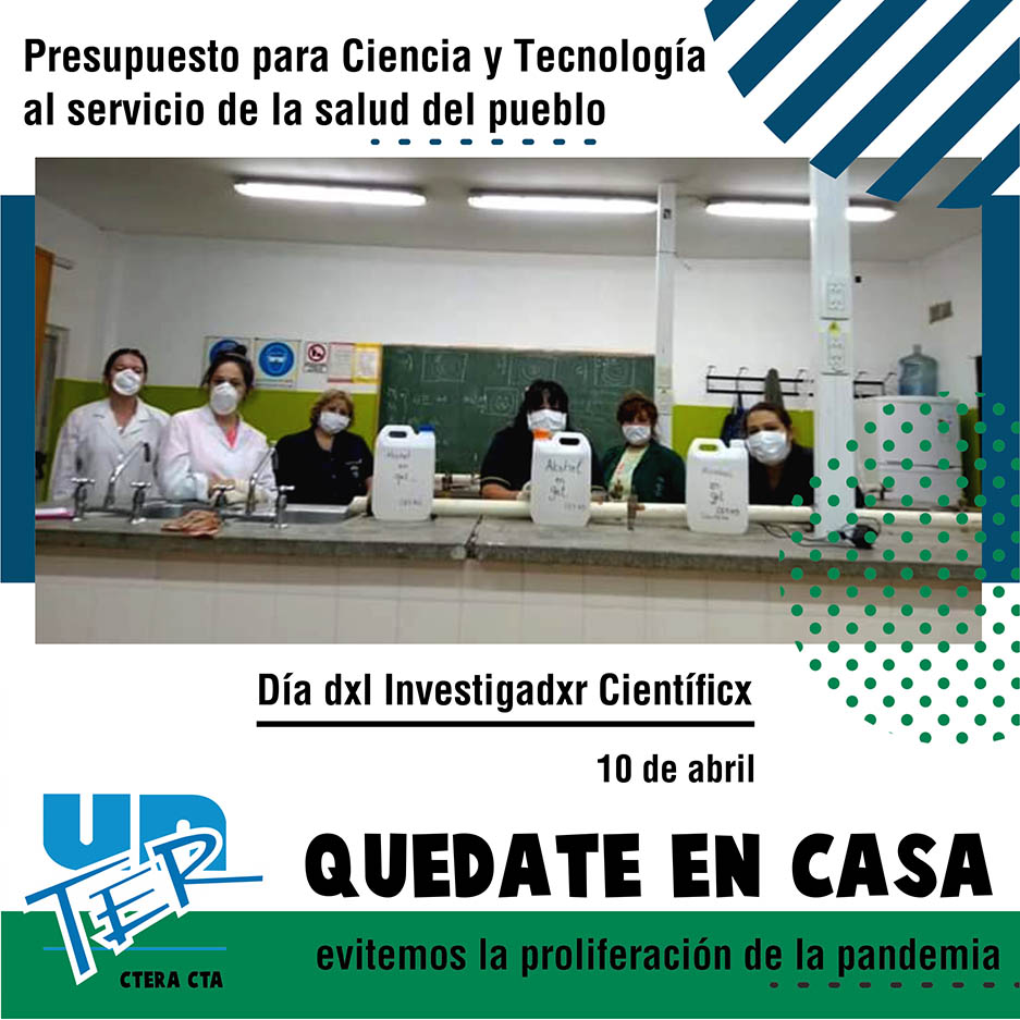 Permanecemos atentxs a las necesidades y entendemos que se requiere de la solidaridad y compromiso de toda la población, nos quedamos en casa y como siempre, desde UnTER seguimos exigiendo presupuesto para la educación, la ciencia y la tecnología, porque se trata en definitiva de invertir para la vida.