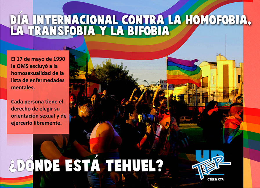 El 17 de mayo se conmemora que la Organización Mundial de la Salud excluyó a la homosexualidad de la lista de enfermedades mentales, es decir que se aceptó que cada persona tiene el derecho de elegir su orientación sexual y de ejercerlo libremente. Pasaron 39 años, en nuestro país se fueron ampliando derechos con la leyes de ESI, de Identidad de género y de matrimonio igualitario. En Río Negro se avanzó con la Ley de cupo laboral trans. La lucha continúa para que se respeten los derechos al trabajo, la salud y la vida digna de todas las personas, y como ha sido hasta ahora, será la escuela uno de los espacios más significativos para lograrlo.