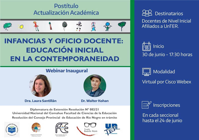 En esta oportunidad lo haremos con una webinar inaugural en el marco del lanzamiento de la Actualización Académica: Infancias y Oficio Docente: Educación Inicial en la Contemporaneidad, dirigida a Docentes de Nivel Inicial.