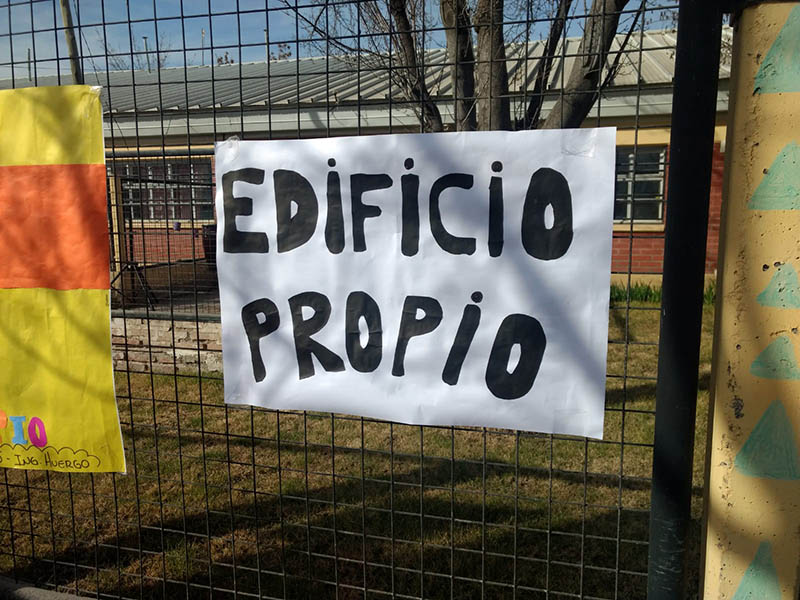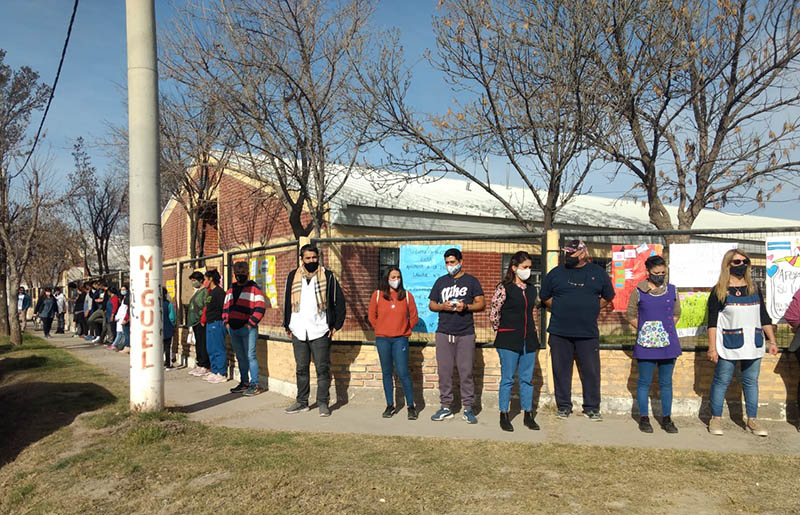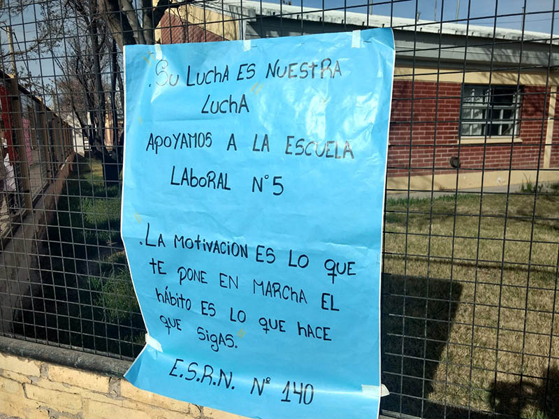 Hace dieciocho años que la Escuela de Formación Cooperativa y de Laboral Nº 5 de Huergo reclama un edificio propio, el 6 de agosto de 2021, se realizó un abrazo simbólico como una acción más para visibilizar la problemática de esta institución educativa que funciona en unas aulas cedidas por la Escuela de Educación Especial Nº 15, con toda la dificultad que esta situación acarrea para el proceso de enseñanza- aprendizaje.