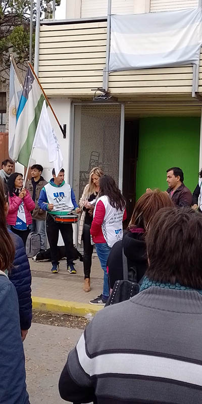 Contundente adhesión a las primeras 48 horas de paro docente. Gran participación en las acciones locales que se realizaron en toda la provincia el martes 26 y miércoles 27 de abril en dependencias de la obra social provincial, la agencia de recaudación impositiva y los consejos escolares para requerir al gobierno de la provincia que mejore las condiciones salariales, de salud y educativas de lxs trabajadorxs y sus familias.