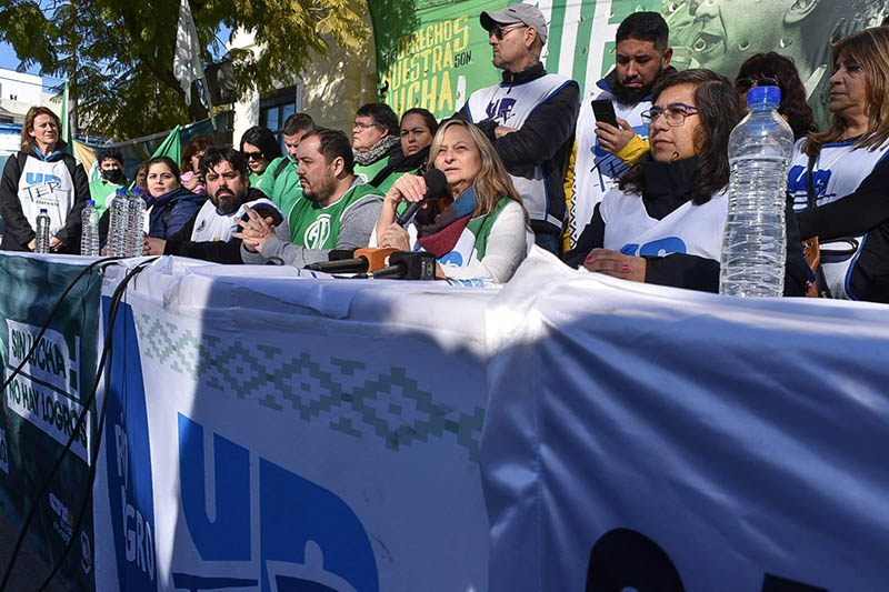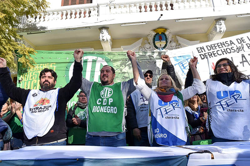 En conferencia de prensa, del Frente Sindical de Río Negro, del que forman parte ATE, Sitrajur y UnTER, realizada Frente a Casa de Gobierno en Viedma el 3 de agosto, Sandra Schieroni, Secretaria General de UnTER señaló que la actividad se articuló, en el marco de la convocatoria a Paritaria salarial para el viernes 5 «para mostrar la unidad de trabajadorxs, nos une el reclamo por un salario que nos permita vivir con dignidad a lxs trabajadorxs estatales de la provincia. Lxs estatales estamos unidxs y vamos a estar en la calle cada vez que sea necesario para reclamar por nuestros derechos, queremos una propuesta salarial que contemple los requerimientos de la clase trabajadora, recuperar el porcentaje que perdimos en el primer semestre, que acompañe el proceso inflacionario.