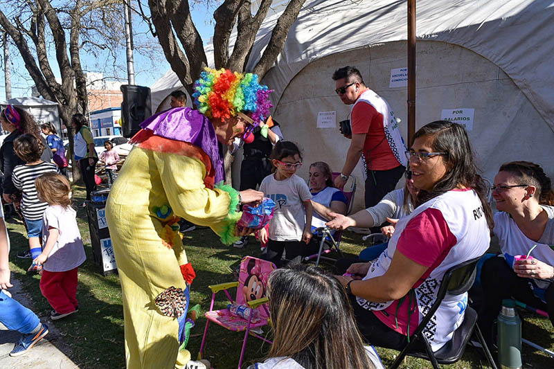 El sábado 3 de septiembre, en la Carpa de la Dignidad Docente se celebró el día de la niñez. Actividad organizada por la Seccional Viedma que se trasladó frente a la Casa de Gobierno, lugar en donde la UnTER sostiene el reclamo por salarios y condiciones dignas para enseñar y aprender.