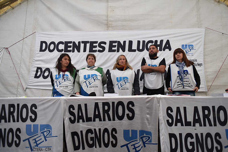El anuncio lo realizó Sandra Schieroni, Secretaria General, en conferencia de prensa realizada en la Carpa de la Dignidad Docente el 7 de septiembre, luego de la audiencia paritaria del martes 6, que pasó a cuarto intermedio para el 13/09/22. Será “con algunxs compañerxs, de manera progresiva se van a ir sumando, vamos a convocar un plenario en la Carpa”. Comunicó también que desde UnTER se definió denunciar por el delito de incumplimiento de los deberes de funcionario público al Ministro de Trabajo Jorge Stopiello.